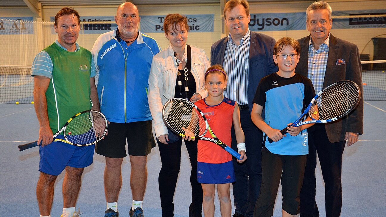 Man konnte das gesamte Angebot von Badminton über Tennis bis hin zu Kraft- und Ausdauertraining ansehen und ausprobieren. Auf dem Tennisplatz trafen BGM Brigitte Ribisch und VBGM Georg Eigner auch noch den Tennistrainer Heribert Elias mit einem 8 jährigen tschechischen Mädchen. Sie ist ein wirkliches Talent und zeigt auch so manchem älteren Tennis-Ass wo es im Tennis lang geht.